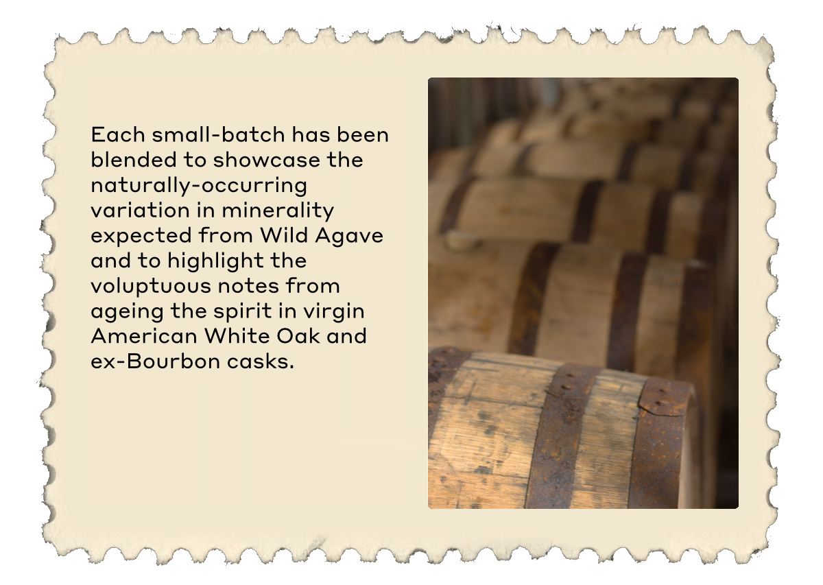 Finally, aged Agave spirit from various casks is blended, non-chill filtered and bottled. No artificial additives or coloring agents are used.